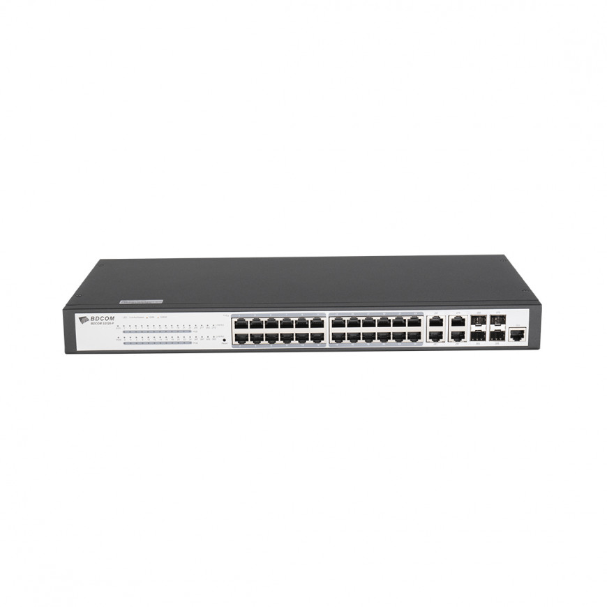 Коммутатор, BDCOM, S2528-P, Управляемый L2+, 24 порта PoE 10/100/1000M RJ45, 4 комбо-порта 1000M SFP, Бюджет PoE 370W, Стоечный 1U,