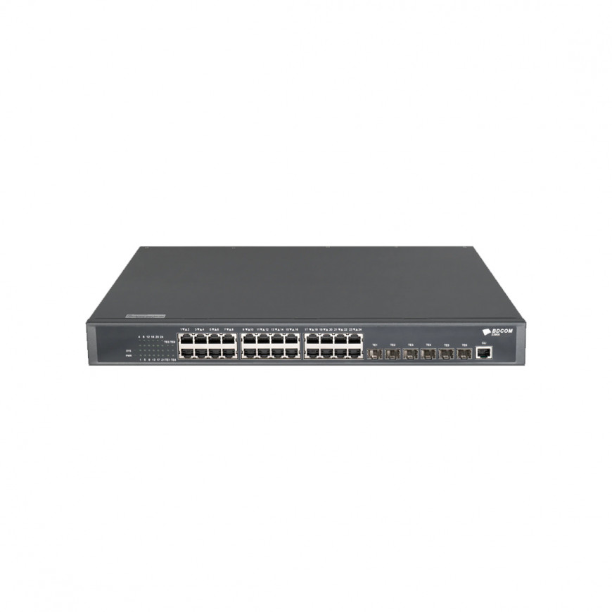 Коммутатор, BDCOM, S3900-24T6X, Управляемый L3, 24 порта 10/100/1000M RJ45, 6 портов 10G SFP+, Поддержка 2-х блоков питания, Стоечный