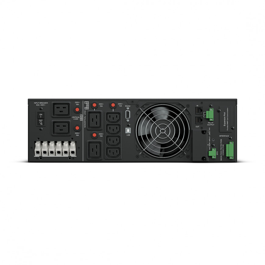 ИБП гарантирует защиту источников резервного питания для информационно-технического оборудования, серверов, рабочих станций, NAS / устройств хранения данных, телекоммуникационных устройств, сетевых устройств, систем безопасности / систем аварийного питания, а также систем видеонаблюдения. Данный ИБП использует топологию двойного преобразования для обеспечения высококачественной выходной мощности с дополнительным ECO-режимом, что позволяет экономить электроэнергию и сократить расходы на нее. Этот совместимый с генератором ИБП оснащен батарейными блоками с возможностью «горячей замены» для проведения технического обслуживания без отключения питания, а также Переключателем на аварийное питание (EPO), что позволяет пользователям незамедлительно отключать ИБП в аварийных ситуациях.