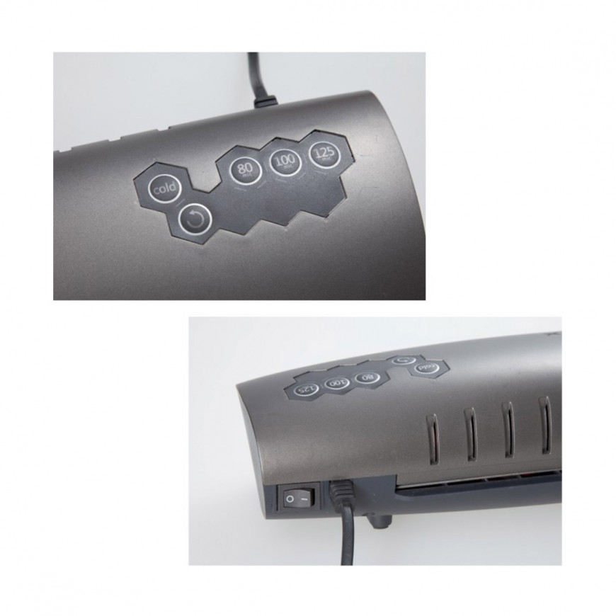 Ламинатор предназначен для работы с пленкой 80, 100 и 125 мкм. Максимальный формат документа А4. Ламинатор прост в управлении и не требует дополнительных настроек. Синий световой сигнал подскажет о готовности к работе через 90 секунд после включения.
