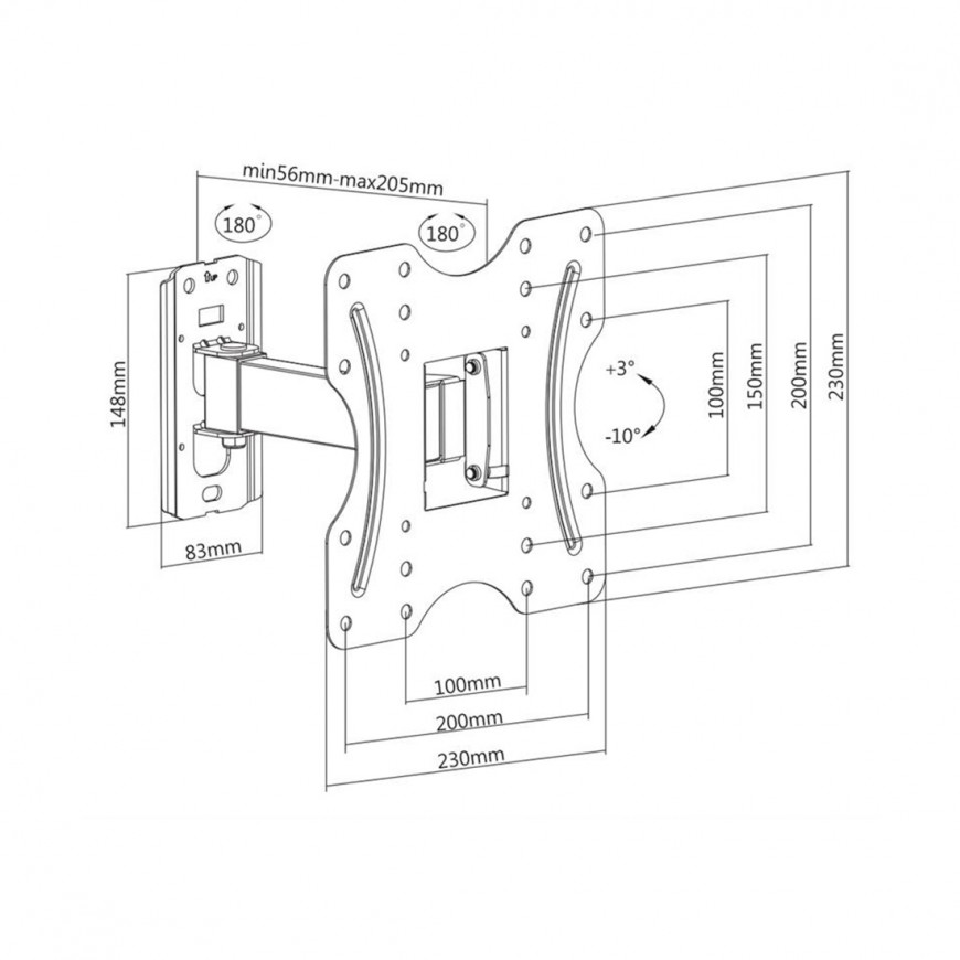 Кронштейн KLA27-221 для ТВ и мониторов Настенный кронштейн подходит для телевизоров и мониторов с диагональю экрана от 23'' до 42''. Крепление KLA27-221 позволяет менять угол наклона +3/-10°. Допустимая максимальная нагрузка 30 кг. Кронштейн изготовлен из высококачественного металла и имеет самый распространённый размер монтажных отверстий. Крепление адаптировано для простого и быстрого монтажа. В комплекте инструкция на казахском и русском языках. Крепления Brateck имеют яркую и оригинальную упаковку на двух языках, отлично подходящую для розничной торговли. Совместимость с VESA: 100x100,200x100,200x200 Допустимая нагрузка: 30kg